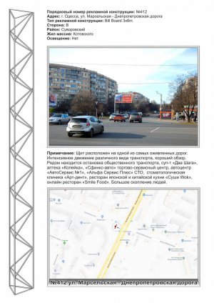 Щит расположен на одной из самых оживленных дорог. Интенсивное движение различного вида транспорта, хороший обзор. Рядом находится остановка общественного транспорта, суп-т «Два Шага», аптека «Копейка», «Сфинкс-авто» торгово-сервисный центр, автоцентр «АвтоСервис №1», «Альфа Сервис Плюс» СТО, стоматологическая