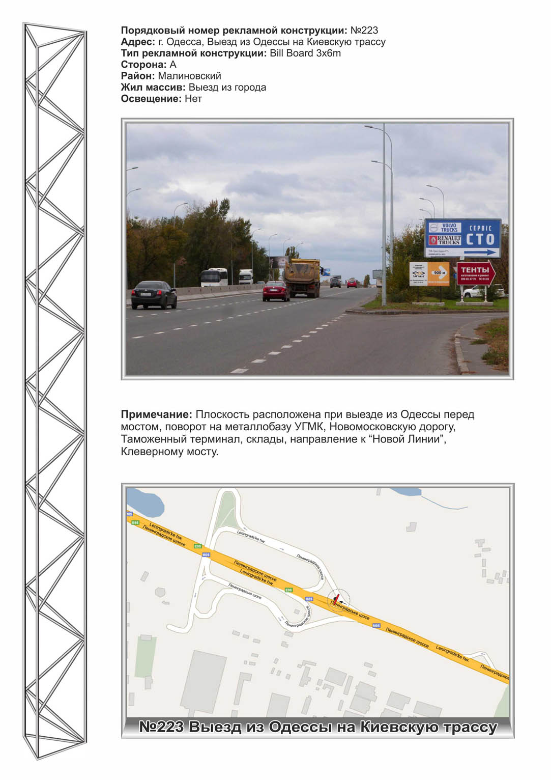 | Плоскость расположена при выезде из Одессы перед мостом, поворот на металлобазу УГМК, Новомосковскую дорогу, Таможенный терминал, склады, направление к "Новой Линии", Клеверному мосту. |
