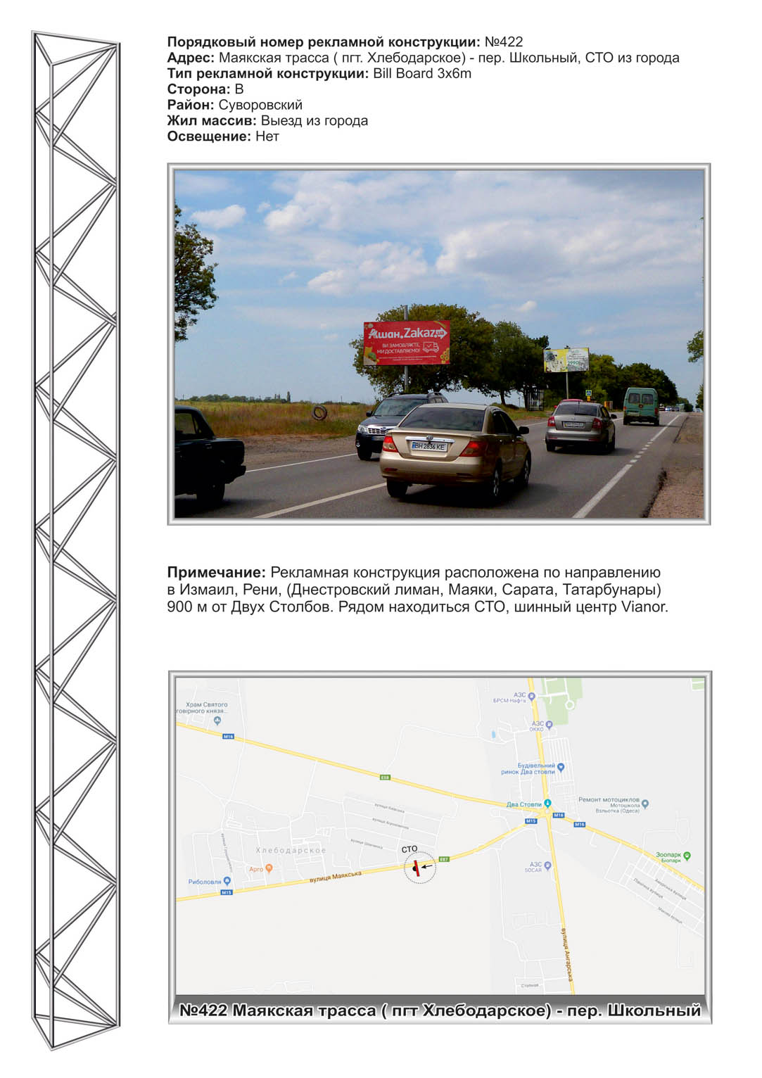 | Адрес: | №422 Маякская трасса ( пгт Хлебодарское) - пер. Школьный, СТО из города |