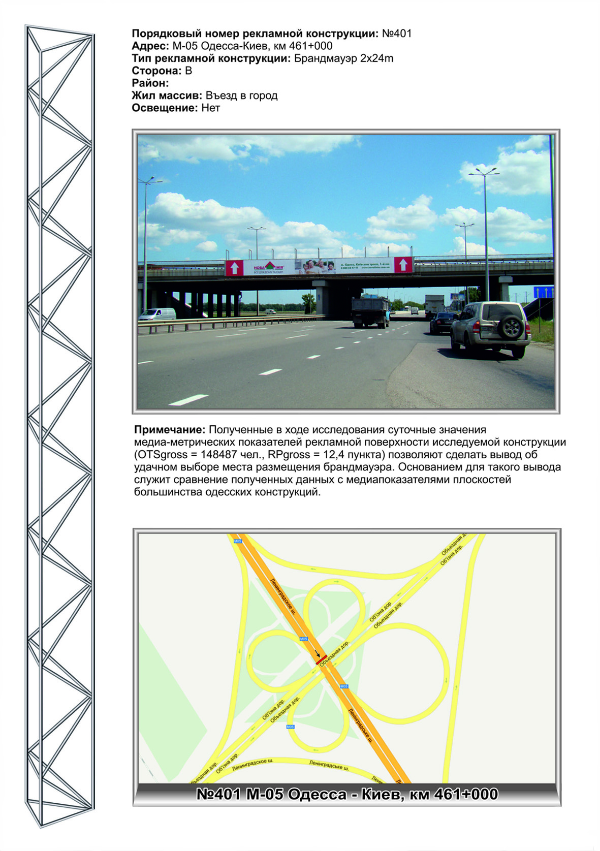 (OTSgross = 148487 чел., RPgross = 12,4 пункта) позволяют сделать вывод об удачном выборе места размещения брандмауэра. Основанием для такого вывода служит сравнение полученных данных с медиапоказателями плоскостей большинства одесских конструкций.