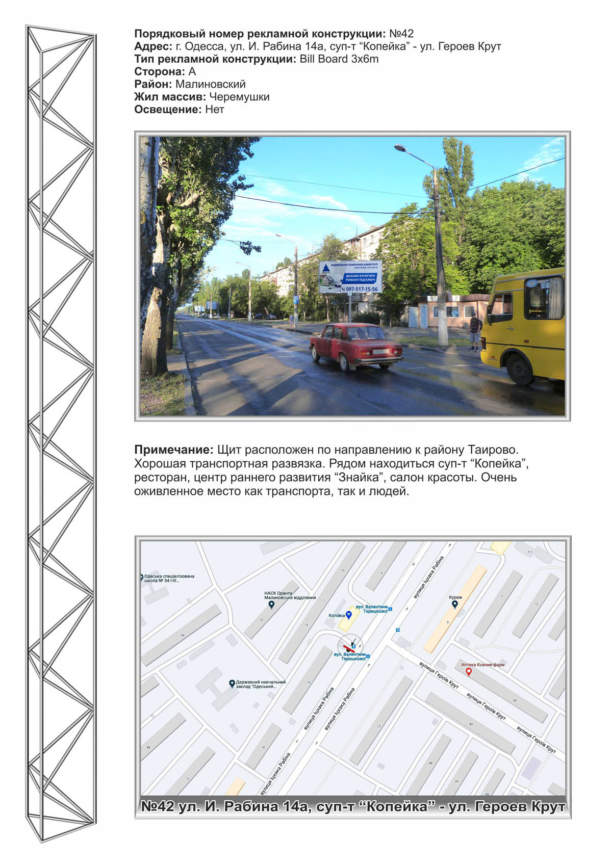 | Адрес: | ул. И. Рабина 14а, суп-т "Копейка" - ул. Героев Крут |