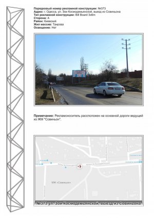 Рекламоноситель рассположен на основной дороги ведущей из ЖМ "Совиньон".