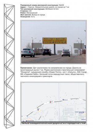 | Щит расположен по направлению из города. Дорога на промтоварный рынок 7 км. Рядом расположен строительный гипермаркет "Эпицентр", курьерская служба «Новая Почта», суп-т «Сельпо», АЗС Сокар,